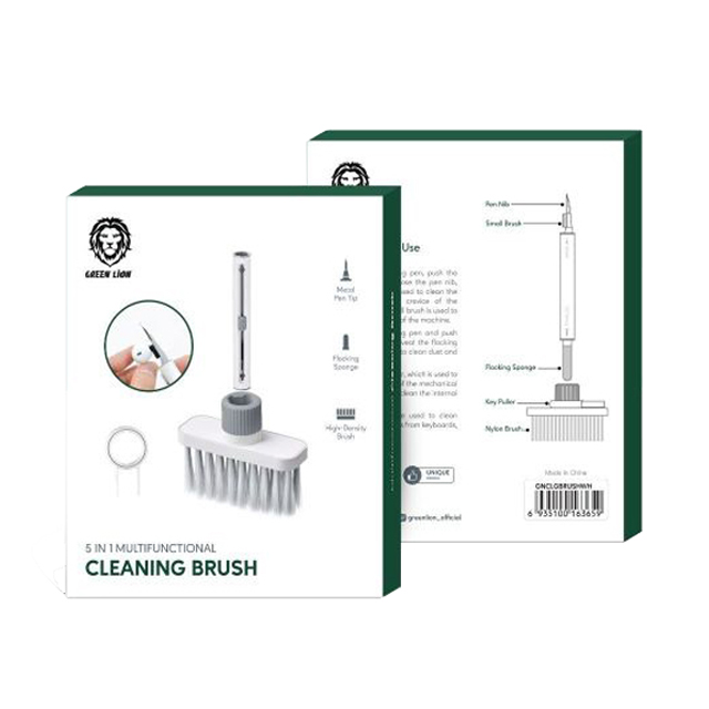 The Green Lion 5 in 1 Multifunctional Cleaning Brush is a versatile and compact cleaning tool designed to tackle various cleaning tasks with ease. This multifunctional brush features a high-density brush that can effectively remove dust, dirt, and debris from a wide range of surfaces, including keyboards, electronics, and household items. The inclusion of a flocking sponge adds an extra layer of cleaning versatility, allowing you to gently wipe away smudges and stains without causing any damage. Moreover, the metal pen tip serves as a precision tool, perfect for reaching and cleaning tight or hard-to-reach spaces with ease. Whether you need to maintain the cleanliness of your electronics, clean delicate surfaces, or detail small and intricate items, the Green Lion 5 in 1 Multifunctional Cleaning Brush offers a practical and efficient solution to meet your cleaning needs. Its compact design makes it easy to carry around, making it a handy tool for keeping your belongings spotless wherever you go.