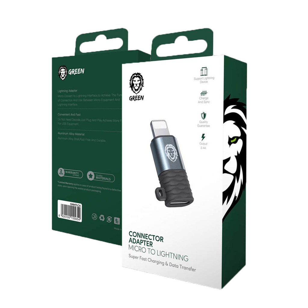 Introducing the Green Lion Micro to Lightning Connector Adapter, a tiny wonder designed for the best connectivity. It makes charging and syncing activities easier and was created to handle Lightning devices. Experience the benefits of quick data transmission and fast charging, ensuring that your smartphone is always ready wherever you are. It is made of a high-quality aluminum alloy that guarantees lifetime and constant performance in addition to being useful and rust-proof. The adapter’s design is pleasantly small and compact despite its powerful capabilities, making it an easy travel companion. It is the ideal blend of power and ease, with a 2.4A output, all wrapped in a stylish black/silver finish. For unmatched connection efficiency, go to Green Lion.
