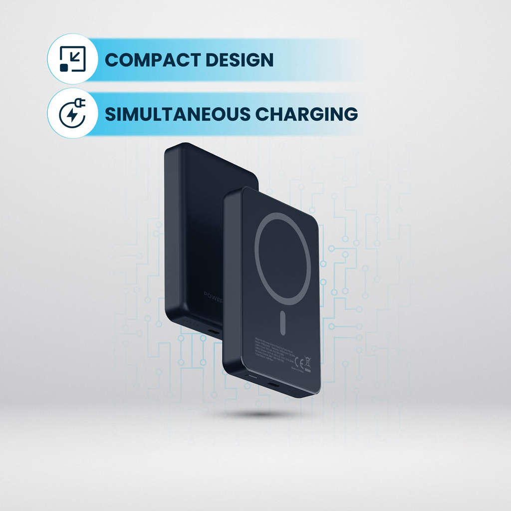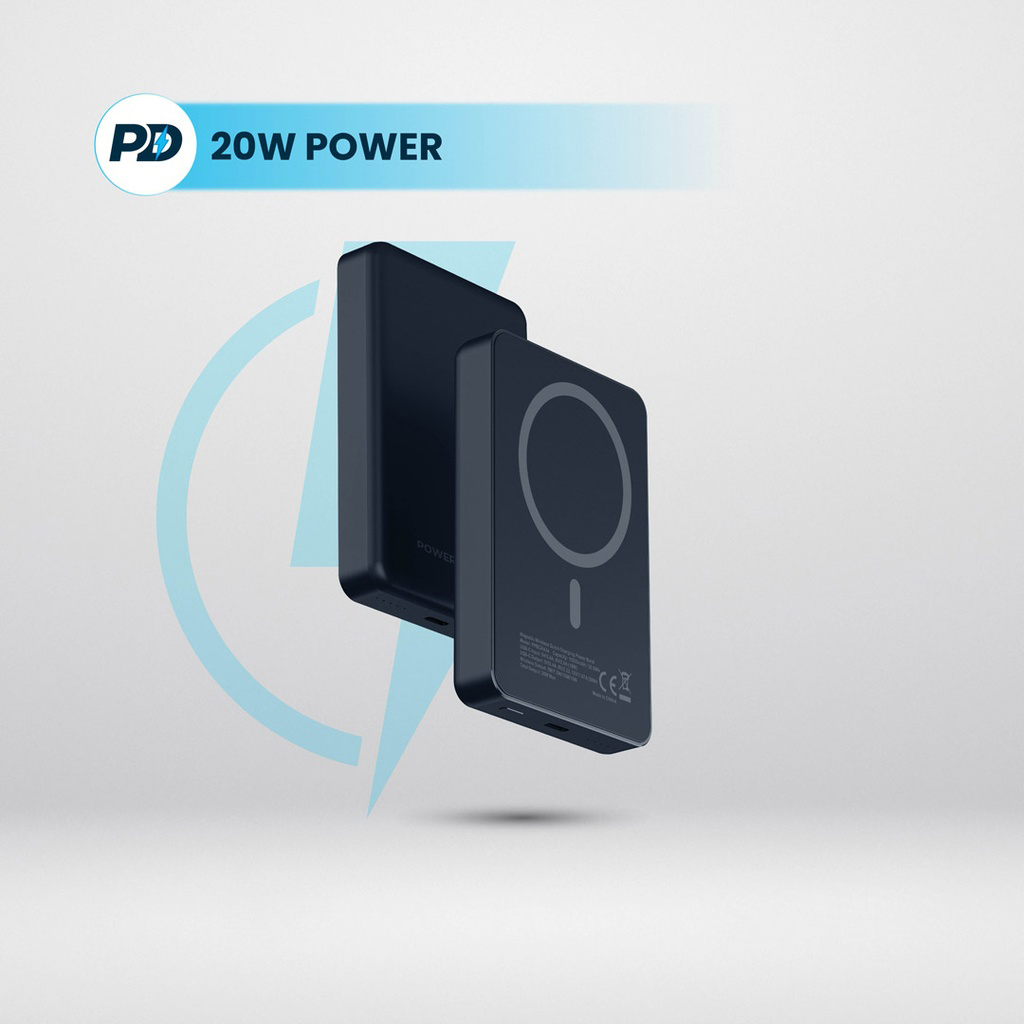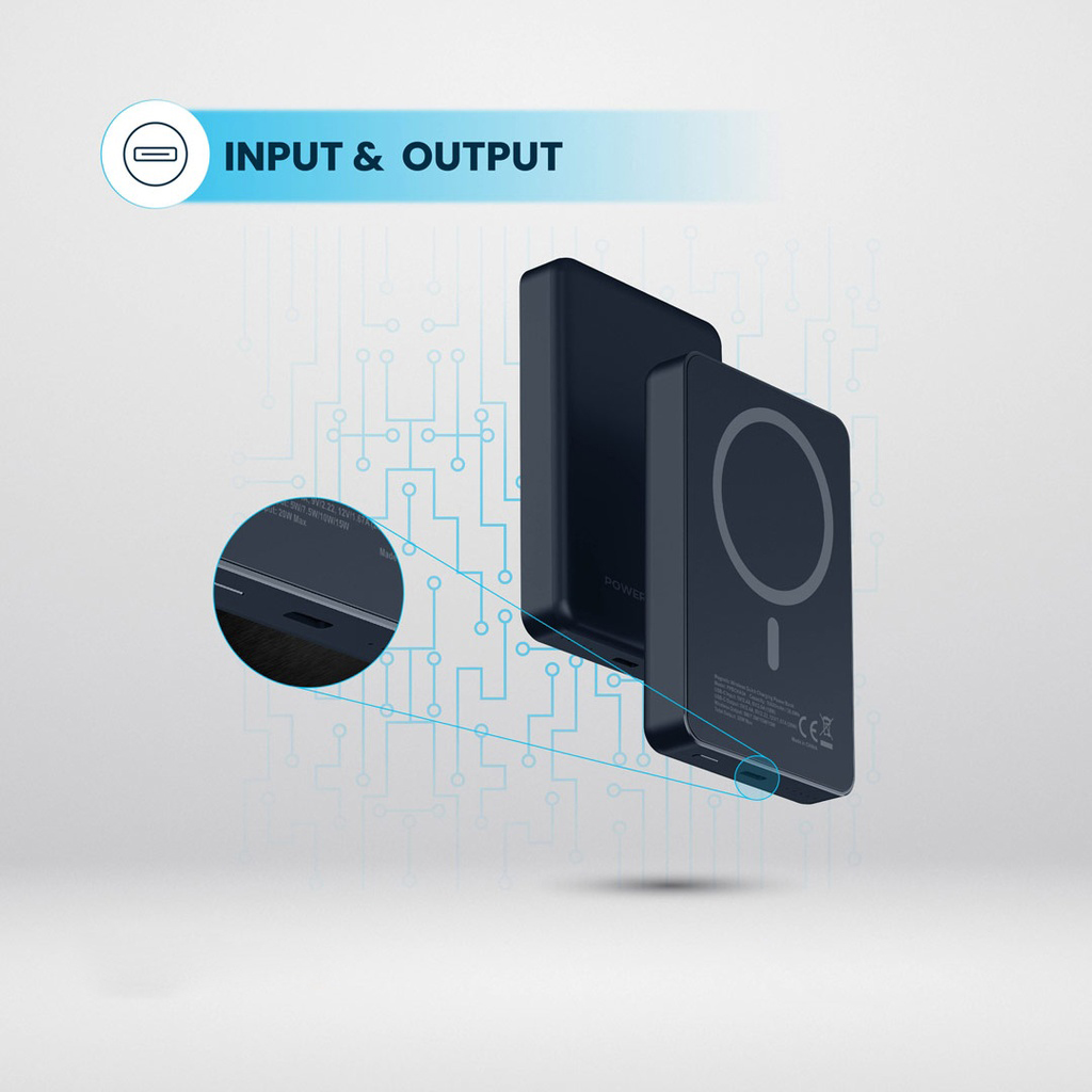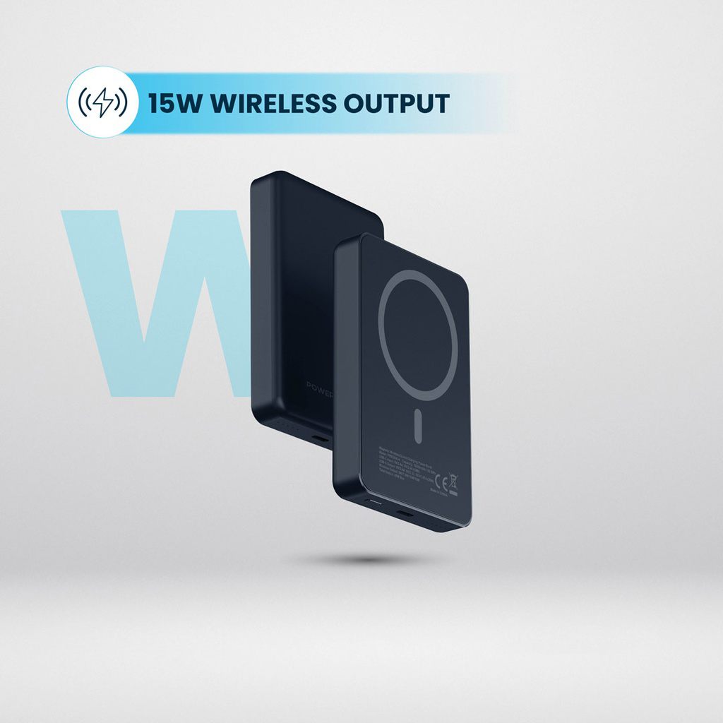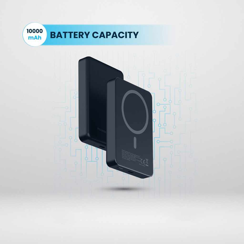 This is Powerology 10000 mAh 20W PD & 15W Magsafe Power Bank. This model provides a huge battery capacity (10000mAh), and type-c and wireless outputs. For type-c charging, you have 20W power delivery (PD), and 15W for wireless charging. These two give you 10W at max if you want to have charging for two devices at the same time.