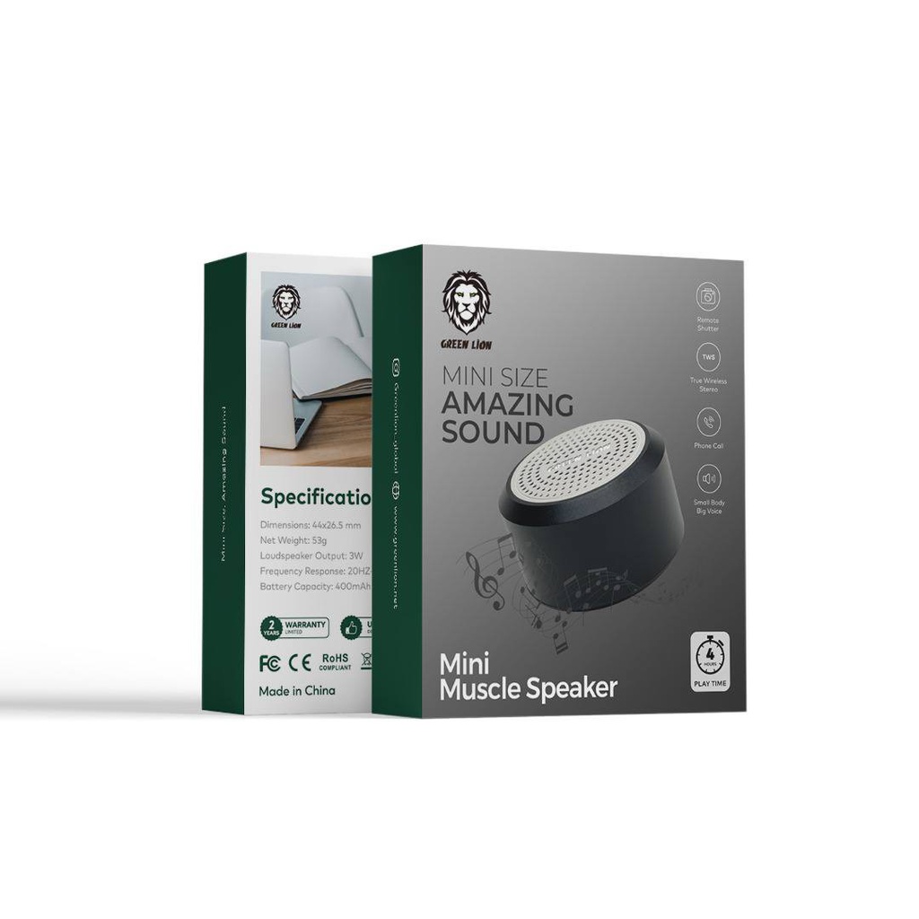 Introducing the new Green Lion Mini Muscle Speaker, the perfect travel friend for endless music enjoyment! This compact speaker is a must-have device for all music fans due to its powere and versatility. Enjoy up to 4 hours of nonstop playback duration and be amazed with its blazing-fast 1-hour recharging time, which makes sure your rhythm never skips a beat! As you have no need to tangled cables, take in the magic of seamless musical joy. Use the advanced Bluetooth Version 5.0 technology to get connected to this with ease and embrace the wireless feature as you feel free in an amazing symphony. Be prepared to be amazed when this little fire shocks you with its powerful 400mAh battery’s ability to produce such a loud sound. Put two Green Lion Mini Muscle Speakers together and use the True Wireless Stereo function to create a 360-degree soundstage for pure audio pleasure. And that’s not all! You can capture the pleasant moments with its shutter feature from a distance. All in all, this compact speaker will surprise you!