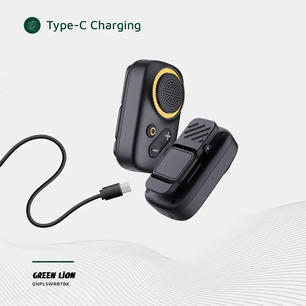 The Green Lion Pulse Wear Wearable BT Speaker is compact and high-performance audio intended for easy on-the-go convenience. Constructed from tough ABS material, it features one 32mm speaker with 3W power output for clear and balanced sound, with 85±3 dB of sensitivity and 4Ω impedance. Having Bluetooth V5.4, it gives fluent connectivity over a range of 10 meters, supporting the voice assistant for hands-free control. The in-built 600mAh battery supports up to 8 hours of playtime, with a quick 2-hour charge via the Type-C port. IPX5 is water-resistant to splash, and dual magnets make this device attach easily to any metal surface. With a built-in microphone for calling and a frequency range of 2402-2480 MHz, this wearable speaker is quite suitable for outdoor adventure, workout, or daily usage.